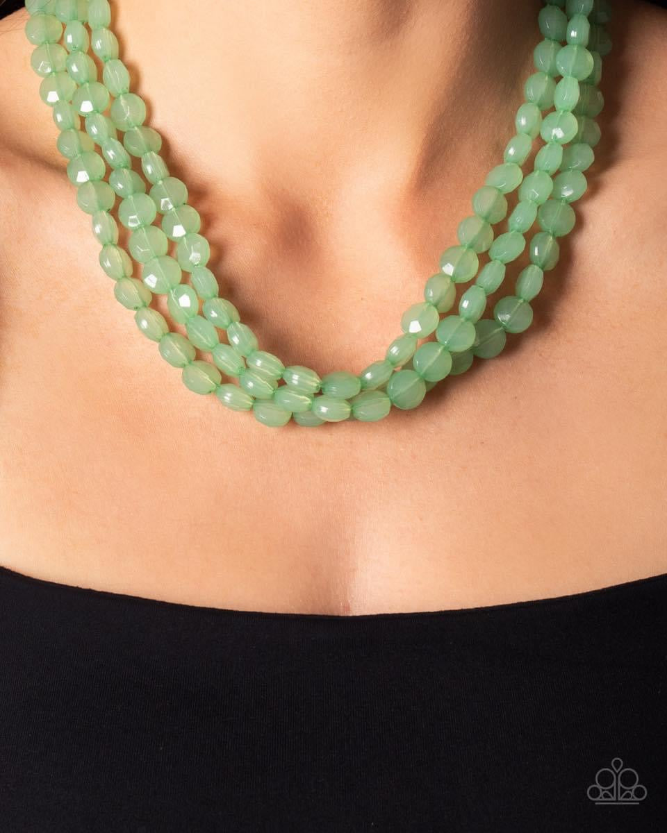 Featuring faceted gem-like cuts, opaque Basil crystal-like beads are threaded along layers of thread below the collar for a dreamy pop of color. Features an adjustable clasp closure.