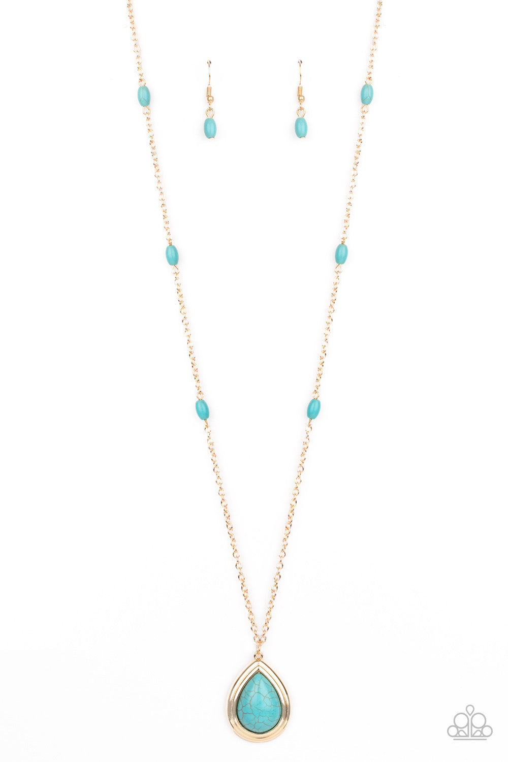 Dotted with turquoise stone beads, a lengthened gold chain gives way to a refreshing turquoise stone teardrop pendant for a simply seasonal finish. Features an adjustable clasp closure.