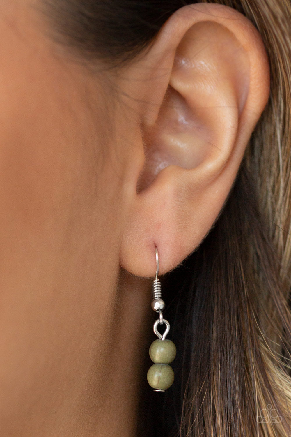 Infused with dainty green stone beads, hammered silver rectangular frames fan about below the collar for a bold seasonal look. Features an adjustable clasp closure.